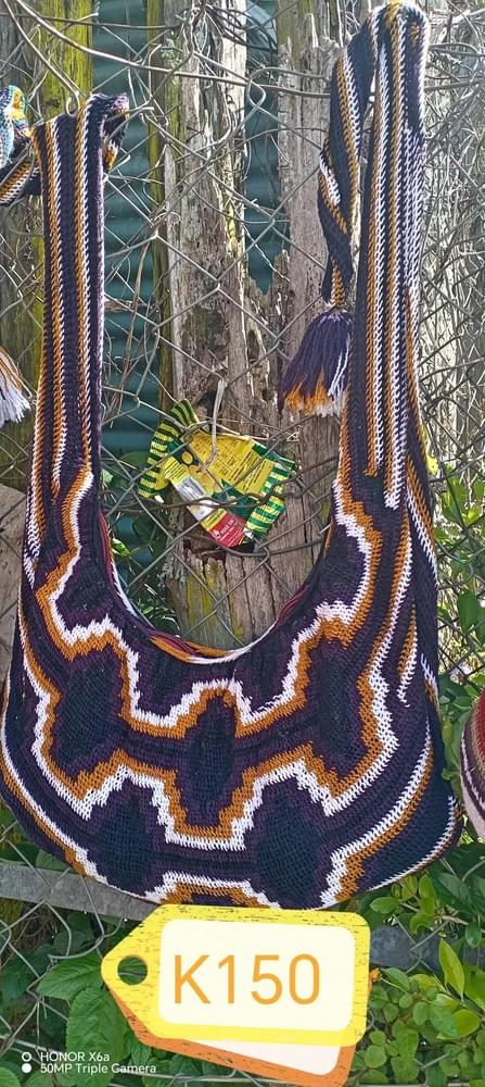 This beautifully **handwoven wool bilum** is crafted by skilled Engan women using traditional weaving techniques passed down through generations. Each bilum features unique cultural patterns and colours, making it both a practical everyday bag and a meaningful cultural accessory.